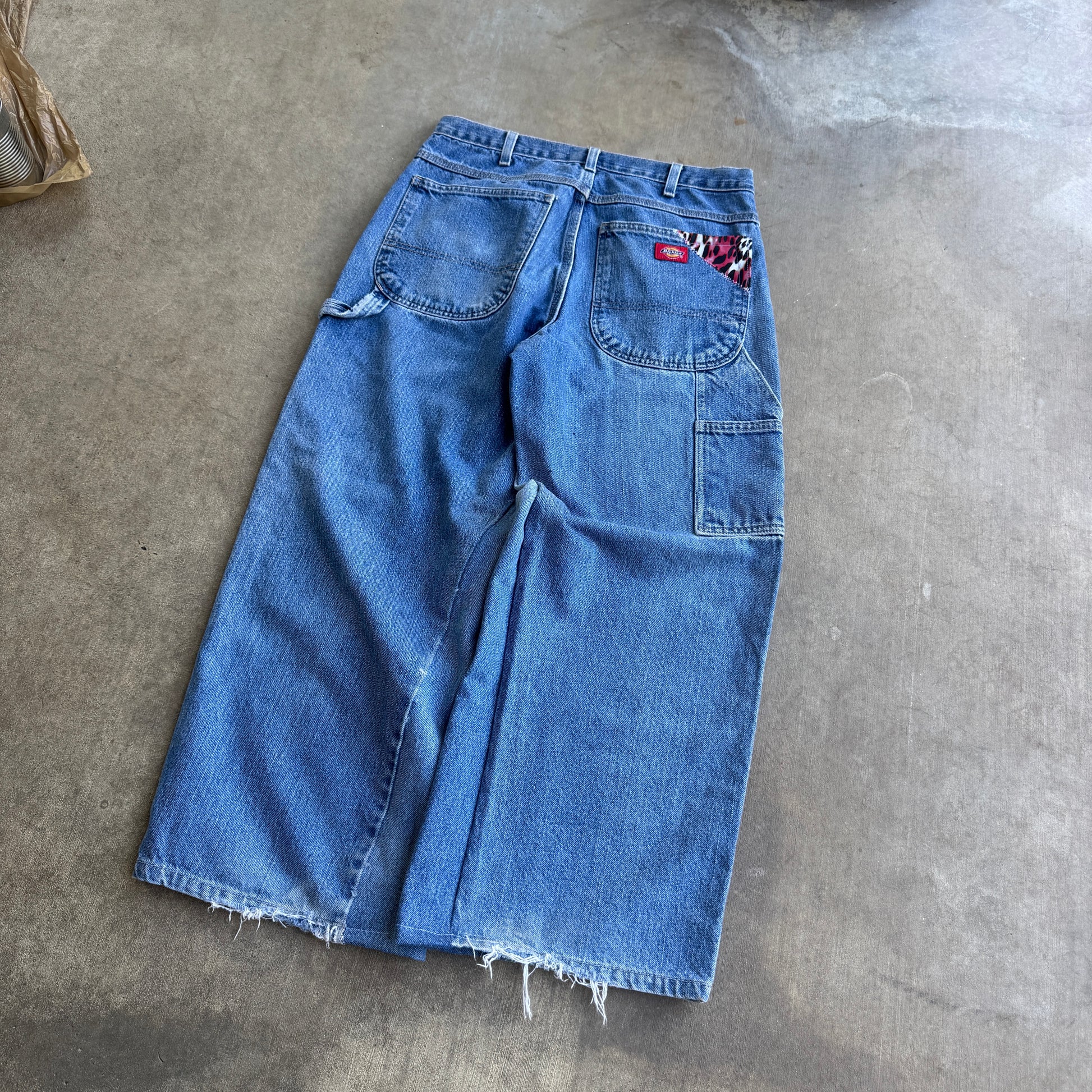 Reworked Baggy Blue Jeans (Pink Print)